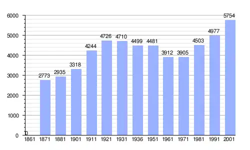 | Gráfica de evolución demográfica de Loreggia entre 1861 y 2001 |