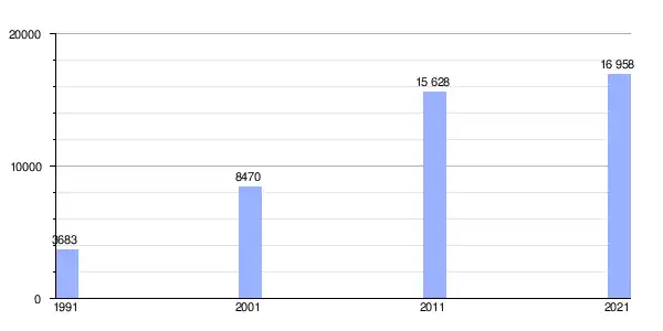 | Gráfica de evolución demográfica de Los Alcázares[13] entre 1991 y 2021 |