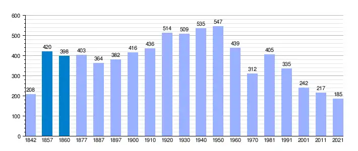 Población de derecho según los censos de población del INE Población de hecho según los censos de población del INEEntre el censo de 1981 y el anterior, crece el término del municipio porque incorpora a Solduengo y Las Vesgas.[4] |