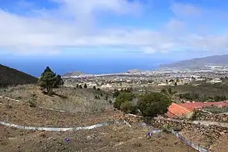 ![]() Vista del Valle de Aridane desde Montaña Rajada en 2015. Los Campitos aparece en término medio | ||