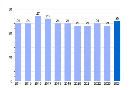 | Gráfica de evolución demográfica de Los Chaulines entre 2014 y 2024 |