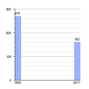 | Gráfica de evolución demográfica de Los Encuentros de Pilares entre 1993 y 2017 |