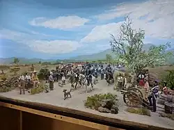 Esta obra, titulada El Ejército Libertador, presenta la llegada de Bernardo O'Higgins y José de San Martín junto con sus ejércitos a la ciudad de Santiago, luego de finalizada la Batalla de Chacabuco. Según el artista, este diorama está ambientado específicamente en el cruce de las actuales avenidas Américo Vespucio con Independencia, zona cercana donde se encuentra la estación Los Libertadores.[10]