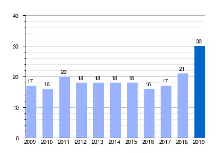 | Gráfica de evolución demográfica de Los Llanos entre 2009 y 2019 |