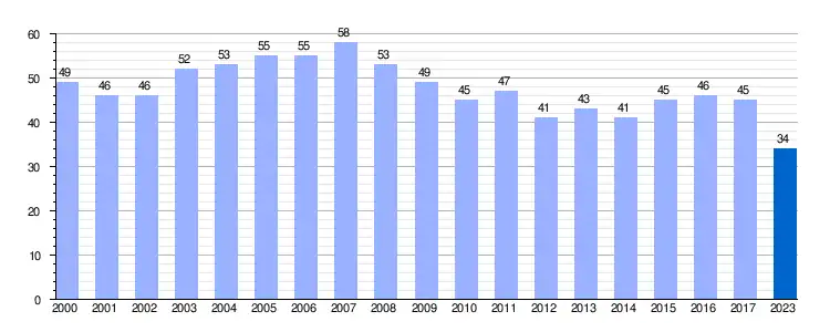 | Gráfica de evolución demográfica de Los Llanos de Valdeón entre 2000 y 2023 |