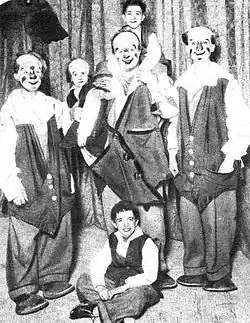 Los niños Gaby, Fofó y Miliki, junto a su tío Thedy y sus primos Nabucodonosorcito y Zampabollos a principios de la década de 1930.