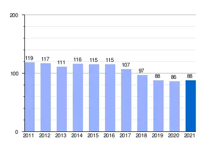 | Gráfica de evolución demográfica de Los Villares entre 2011 y 2021 |