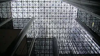 Obra de cinetismo en el patio interno del Cubo Negro, en Caracas. | ||