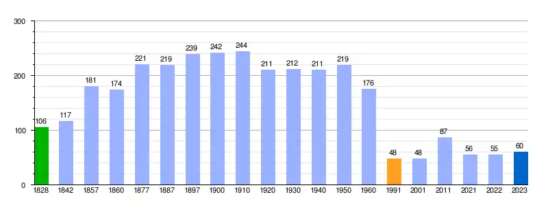 Población según el Diccionario geográfico-estadístico de España y Portugal de Sebastián Miñano.[7] Población según Pedro Luis Siguero Llorente.[18] Población de derecho (1842-2020) según el padrón municipal del INE. Población según el padrón municipal de 2023 del INE. |