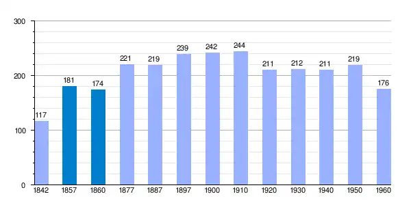 | Gráfica de evolución demográfica de Losana de Pirón[15] entre 1842 y 1960 |