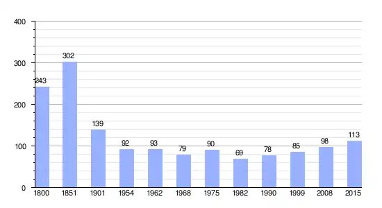 | Gráfica de evolución demográfica de Loucé entre 1800 y 2015 |