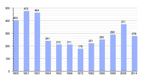 | Gráfica de evolución demográfica de Loudenvielle entre 1800 y 2014 |