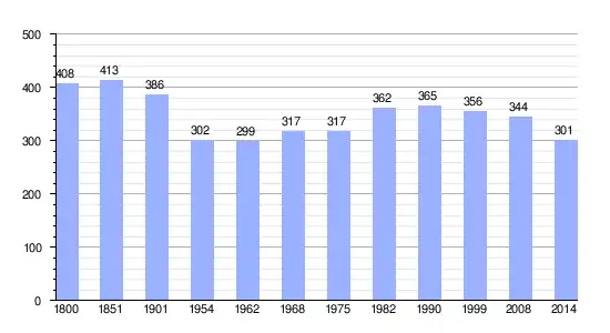 | Gráfica de evolución demográfica de Louvois entre 1800 y 2014 |