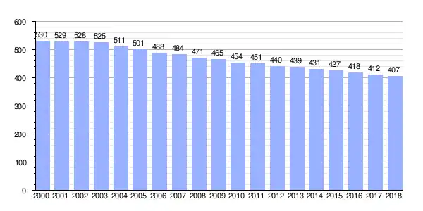 | Gráfica de evolución demográfica de Luaña entre 2000 y 2018 |