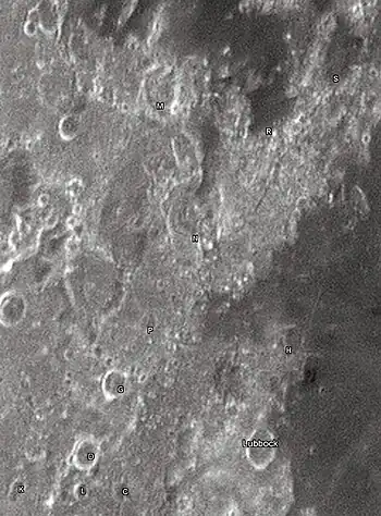 Por convención estos elementos son identificados en los mapas lunares poniendo la letra en el lado del punto medio del cráter que está más cerca de Lubbock.