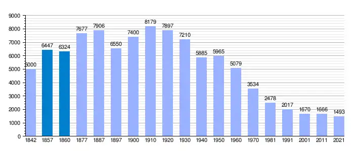 | Gráfica de evolución demográfica de Lubrín[8] entre 1842 y 2021 |
