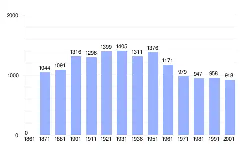 | Gráfica de evolución demográfica de Lubriano entre 1861 y 2001 |