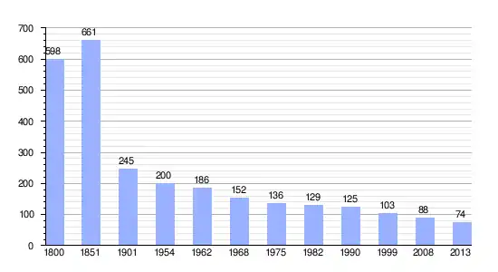 Los datos demográficos contemplados en este gráfico de la comuna de Lucé[4] se han cogido de 1800 a 1999 de la página francesa EHESS/Cassini, y los demás datos de la página del INSEE.[5]