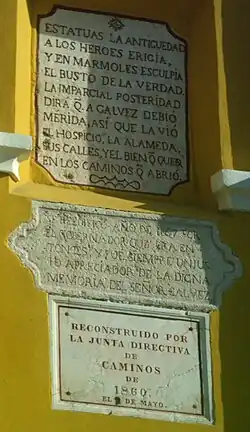 - Hay un monumento en la Ciudad de Mérida llamado la Cruz de Gálvez en su memoria.[6]