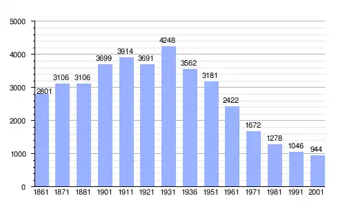 | Gráfica de evolución demográfica de Lucoli entre 1861 y 2001 |