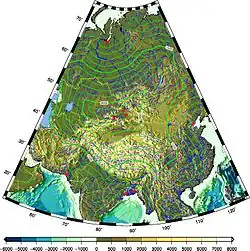 El polo de inaccesibilidad de Eurasia es el lugar más alejado del mar en la superficie de la Tierra[1][2] y tiene dos posibles localizaciones, como consecuencia de la indefinición de la línea de costa en la desembocadura del río Ganges. Estos dos lugares son denominados EPIA1:44°17′N 82°11′E / 44.29, 82.19 y EPIA2: 45°17′N 88°08′E / 45.28, 88.14[3]