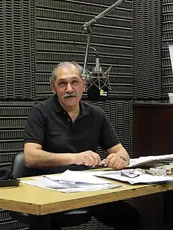 ![]() El "Turco", en Radio Rivadavia, donde trabajó 20 años. | ||