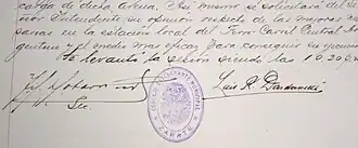 - ↑ «Acta N°141.912». Boletín Oficial de la República Argentina del 16 de octubre de 1929. 1929. Consultado el 13 de enero de 2024.