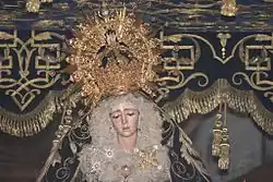 Esta imagen en madera policromada pertenece a la Venerable Hermandad Sacramental y Real Cofradía de Penitencia de Nuestra Señora de la Soledad, Santo Entierro de Nuestro Señor Jesucristo y San Francisco de Paula.[46] Las tres esculturas, la de la Virgen, la del Cristo yacente y la de San Francisco de Paula, han estado atribuidas desde antiguo a Luisa Roldán, hasta el descubrimiento del documento mencionado en 1988, en que se ha podido identificar plenamente la autoría de la imagen de la Soledad, la cual se conserva tal y como la realizó su autora. La de San Francisco de Paula también está totalmente documentado que es de Roldán aunque la imagen del Cristo sigue atribuyéndose a su círculo. Ambas se encuentran en la iglesia conventual de la Victoria.[44]