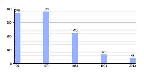 Hasta 2013 la población era de 42 habitantes,[4] con una densidad de población de 4,2 hab/km².[4]