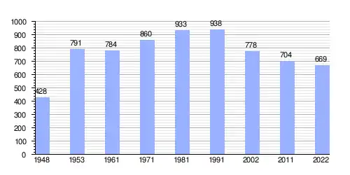 Hasta 2022 la población era de 669 habitantes,[3] con una densidad de población de 103,1 habitantes por kilómetro cuadrado.[3]