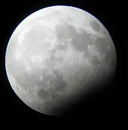 La primera persona que midió la distancia a la Luna fue el astrónomo y geógrafo Hiparco en el año 150 a. C., para lo que se basó en el dato del diámetro de la Tierra calculado por Eratóstenes 100 años antes, y obtuvo una distancia de 348 000 km. Para este cálculo utilizó la curvatura de la sombra que proyecta la Tierra sobre la Luna en un eclipse lunar, un método ideado por Aristarco de Samos.[24]​ Es notable el pequeño error, dada las limitaciones de la época, que es de solamente de unos 36 000 km, lo que representa menos de 10 %.