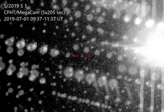 - ↑ Ashton, Edward; Gladman, Brett; Beaudoin, Matthew; Alexandersen, Mike; Petit, Jean-Marc (Mayo de 2022). «Discovery of the Closest Saturnian Irregular Moon, S/2019 S 1, and Implications for the Direct/Retrograde Satellite Ratio». The Astronomical Journal 3 (5): 5. Bibcode:2022PSJ.....3..107A. S2CID 248771843. doi:10.3847/PSJ/ac64a2. 107.