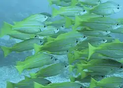 - ↑ Christopher Scharpf; Kenneth J. Lazara, eds. (5 de enero de 2021). «Order LUTJANIFORMES: Families HAEMULIDAE and LUTJANIDAE». The ETYFish Project Fish Name Etymology Database. Christopher Scharpf and Kenneth J. Lazara. Archivado desde el original el 12 de abril de 2021. Consultado el 17 de junio de 2021.