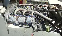 - Motor turbocargado con un carburador, montado verticalmente para su uso en helicóptero.