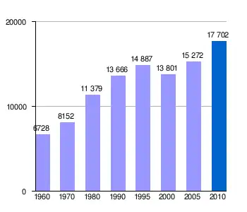 Según el último censo del INEGI en el 2010 el municipio contabá con una población de 17,702 habitantes de los cuales 8,504 eran hombres y 9,198 eran mujeres. El crecimiento que tuvo el municipio del 2005-2010 fue de un 15,91%.