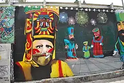 Hay danzas que se encargan de parodiar a los europeos, especialmente a los ricos dueños de haciendas, este tipo de danzas se realizan más en los Carnavales, uno de los más conocidos es el de los Chinelos, que se baila en el estado de Morelos.[7] En Tlaxcala para el baile de los Catrines (Chulos), los bailarines utilizan máscaras con un tono de piel más claro y sostienen paraguas para hacer una petición de que llueva. El uso de sombreros y abrigos también hacen más representativo el papel de los ricos.[30]
