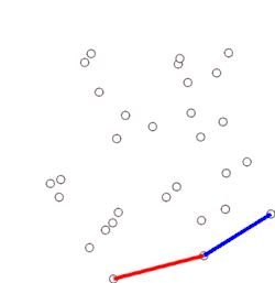 Después, el conjunto de puntos debe ser ordenado en orden creciente de ángulo abarcado entre el segmento que los une con el punto P y el eje de abscisas. Para ello se puede utilizar cualquier algoritmo de ordenamiento. Para agilizar el proceso, se puede omitir el cálculo del ángulo ya que es suficiente con hallar su cotangente.