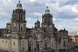 La presencia humana en México se remonta a 30 000 años antes del presente.[23]​ Como fruto de miles de años de desarrollo cultural, surgieron en el territorio mexicano las culturas mesoamericanas, aridoamericanas y oasisamericanas. El actual territorio central de México fue el principal y mayor escenario del pueblo mexica y, en el sur, del pueblo maya, dos de las civilizaciones más importantes de la América precolombina. Durante 300 años, la totalidad del actual territorio formó parte del Virreinato de Nueva España, con capital en la Ciudad de México, siendo una de las entidades más importantes del Imperio español en América. Tras la dominación española, Nueva España inició la lucha por su independencia política en 1810, que culminó en 1821. Posteriormente, durante cerca de un siglo el país se vio envuelto en una serie de guerras internas e invasiones extranjeras que tuvieron repercusiones en todos los ámbitos de la vida de los mexicanos. Durante buena parte del siglo XX (principalmente el segundo tercio) tuvo lugar un periodo de gran crecimiento económico en el marco de una política dominada por un solo partido político.