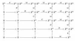 Alternativamente, se puede utilizar una definición de teoría de conjuntos de un módulo de persistencia que es equivalente al punto de vista categórico: Un módulo de persistencia es un par dónde es una colección de -espacios vectoriales y es una colección de mapas lineales donde Para cada uno , de tal manera que Para cualquiera (es decir, todos los mapas viajan). [4]