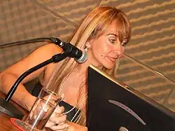 ![]() Mónica Ferrari en los estudios de FM Santa María de las Misiones, en 2013. | ||