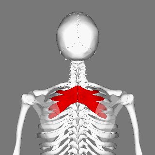![]() Ubicación del músculo serrato posterior superior (en rojo). | ||