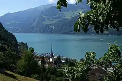 Situado al norte del cantón, a orillas del lago de Walen. La antigua comuna limitaba al norte con la comuna de Amden (SG), al este y sureste con Quarten (SG), y al suroeste y oeste con Obstalden.