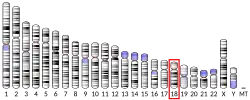 - ↑ «The structural genes, MEP1A and MEP1B, for the alpha and beta subunits of the metalloendopeptidase meprin map to human chromosomes 6p and 18q, respectively». Genomics 25 (1): 300-3. Jul 1995. PMID 7774936. doi:10.1016/0888-7543(95)80142-9.