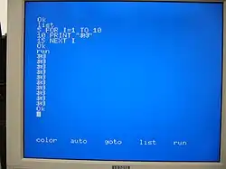 - Screen 0 (modo texto de 40 × 24 caracteres)