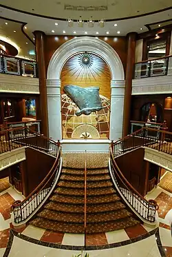 Aunque la distribución de los salones principales del Queen Victoria es similar en otros barcos de la clase Vista, el lujo con que están decorados sus interiores sobrepasa la típica decoración de los cruceros contemporáneos.