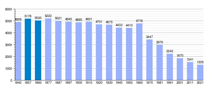 | Gráfica de evolución demográfica de Mañón[2] entre 1842 y 2021 |
