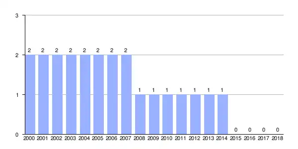 | Gráfica de evolución demográfica de Mañas entre 2000 y 2018 |