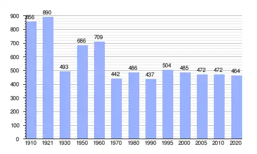 | Gráfica de evolución demográfica de Macayo y Naranjo 2.ª Sección entre 1910 y 2020 |