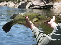 El bacalao del Murray (Maccullochella peelii) es un gran pez depredador australiano de agua dulce del género Maccullochella de la familia Percichthyidae.[1] Aunque la especie se denomina bacalao en la jerga vernácula, no está emparentado con el bacalao marino del hemisferio norte (Gadus). El bacalao del Murray es una parte importante de la fauna vertebrada de Australia -como depredador en el sistema fluvial Murray-Darling- y también es significativo en la cultura humana de Australia.[2] El bacalao del Murray es el pez de agua dulce más grande de Australia y uno de los más grandes del mundo. Otros nombres comunes del bacalao del Murray son bacalao, pez verde, goodoo, bacalao del río Mary, perca del Murray, ponde, pondi y bacalao de agua dulce de Queensland.[1]