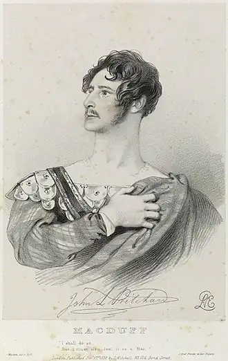 ![]() John Langford Pritchard como Macduff, representado por Richard James Lane en 1838. | ||